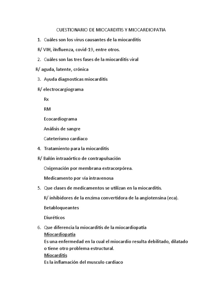 Miocarditis Tratamiento - Tarea Farmacia Enfermedades Y Trastornos Especialidades Medicas - Si tienes un caso moderado de miocarditis o si estás atravesando las primeras etapas, es posible que no tengas síntomas o que estos sean leves, como dolor de pecho o dificultad para respirar.